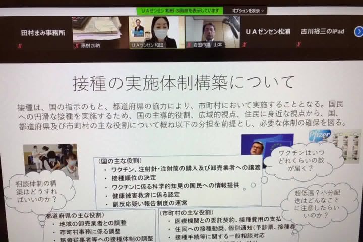 そして18時から待望の、UAゼンセン組合員と一緒に活動されている自治体議員の皆様とオンライン意見交換会。お題は『新型コロナワクチン接種体制』について。決まっていないことが多い中で国民的関心事を全国に仲間がいるからこその連携で、皆さんの不安解消につながる活動をしていきます!